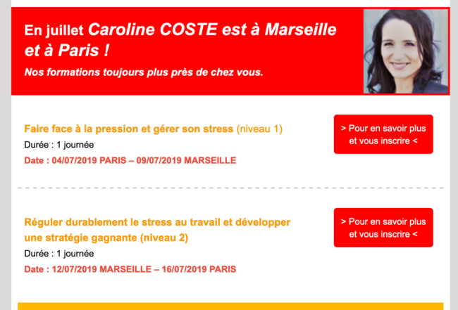 [FORMATION] : Gestion du stress et stratégie gagnante par Caroline Coste – Juillet 2019 (Marseille – Nancy – Paris)