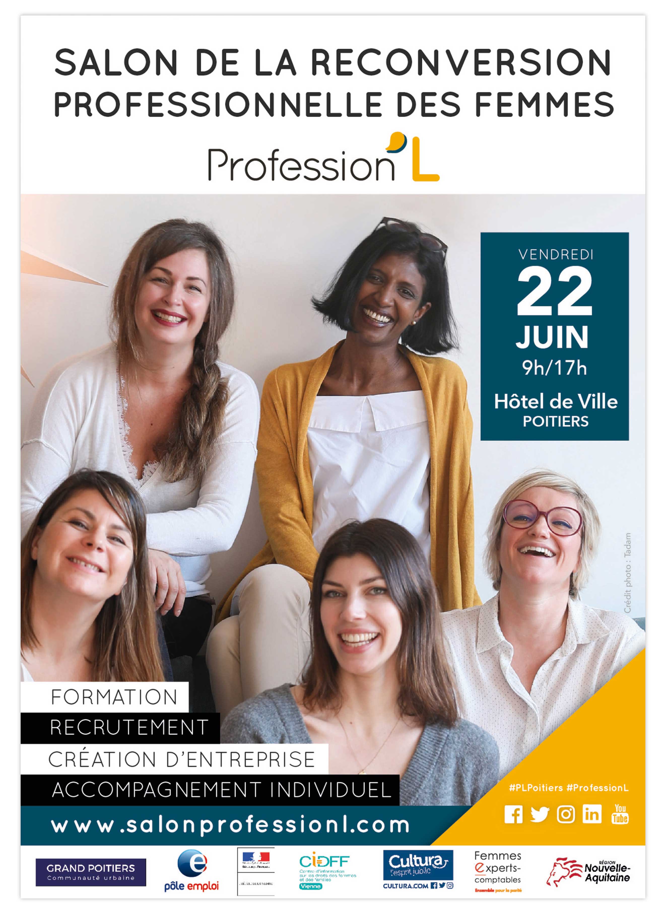 L’Association Femmes experts-comptables sera présente au Salon Profession’L, dédié à la reconversion professionnelle des femmes, le 22 juin 2018 à l’Hotel de Ville de Poitiers (Place du Maréchal Leclerc).